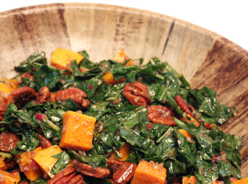 Kale Salad with Roasted Butternut Squash and Spiced Pecans