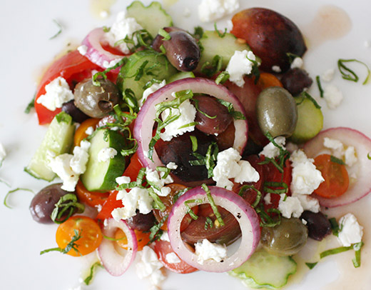 This is a story of one of the simplest dishes having the most impact. I have this memory of a Greek Salad that I ordered at a restaurant in Palm Desert during one of our trips there. It was my favorite thing I ate that entire trip. Tomatoes, cucumbers, olives, and feta makes for such a simple combination that it’s weird that I even remember it. But, it was perfect. When I read my review copy of A Girl and Her Greens
