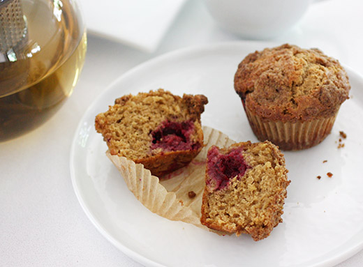 A hot cup of tea went perfectly with these fruity muffins, and I had received a selection of organic teas from Teavivre to try. The Organic White Peony was subtly floral and lovely. It’s a very light bodied tea that was delicious hot and iced. Next, I tried the Hangzhou Tian Mu Qing Ding Green Tea which is a slightly grassy green tea with great flavor. Another green option is Tian Mu Mao Feng, and this one is milder in flavor and lighter in color. These are high quality, loose leaf teas packed in sealed, airtight packages. And, they’d be great with all those coffee cakes too.